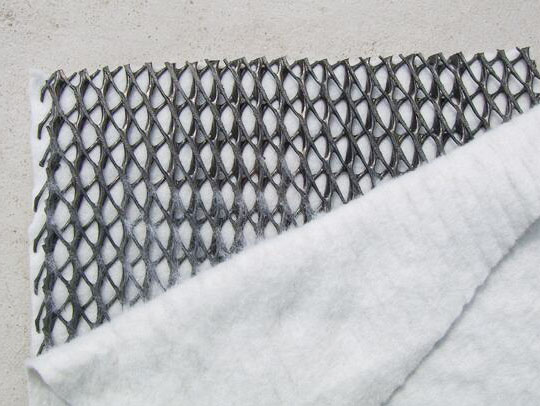 三維復(fù)合排水網(wǎng)是一種新型的排水土工材料。以高密度聚乙烯(HDPE)為原料,經(jīng)特殊的擠出成型工藝加工而成,具有三層特殊結(jié)構(gòu)。中間筋條剛性大,縱向排列,形成排水通道,上下交叉排列的筋條形成支撐防止土工布嵌入排水通道,即使在很高的荷載下也能保持很高的排水性能。雙面粘接滲水土工布復(fù)合使用,具有“反濾--排水--透氣--保護”綜合性能,是目前理想的排水材料。